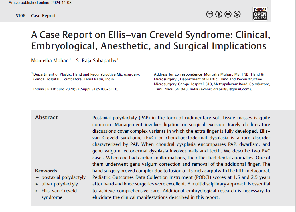 Case Report Category - Mohan M, Sabapathy SR. A Case Report on Ellis-van Creveld Syndrome: Clinical, Embryological, Anesthetic, and Surgical Implications. Indian J Plast Surg. 2024;57(Suppl 1):S106-S110. doi:10.1055/s-0044-1793845